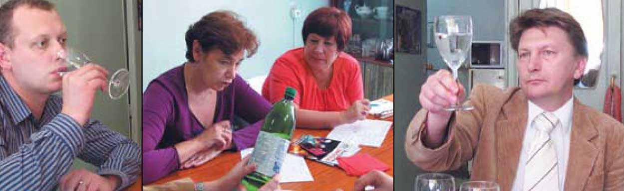 Сначала эксперты дегустировали питьевую негазированную воду, после чего настал черед минеральных лечебно-столовых напитков. Профессионалы придирчиво всматривались в прозрачность пяти, казалось бы, абсолютно одинаковых образцов, принюхивались к содержимому бокалов и внимательно прислушивались к отзывам рецепторов, попробовав воду на вкус. Периодически особо осведомленные моментально угадывали известную марку минеральной воды по одному лишь запаху (профессионализм, как говорится, не пропьешь!).
