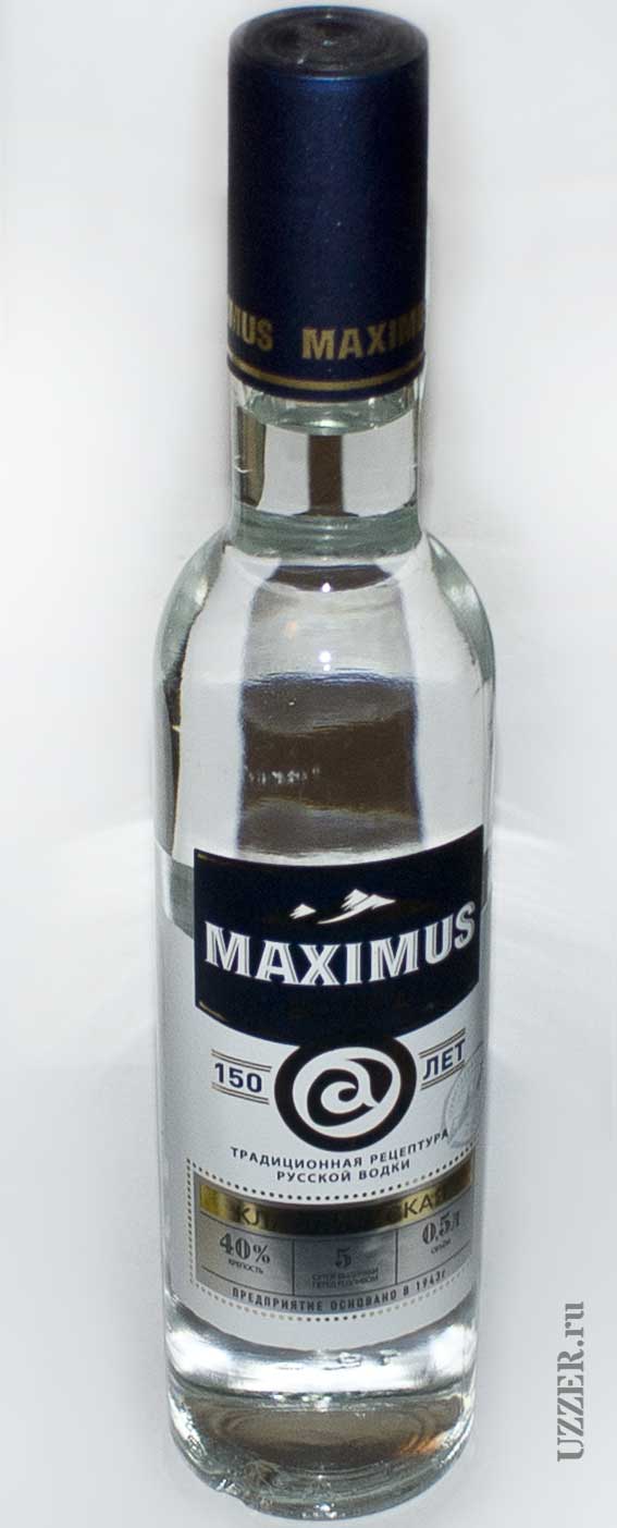 So, let's get started! The bottle is cylindrical, "slender," and "tall." Frankly, I prefer the "stocky and pot-bellied" ones – they are more stable, especially during a boisterous feast... Oh well, it's a matter of taste. The main label features stylized mountains and the name: MAXIMUS Vodka. 150 years of Aktobe. Traditional Russian vodka recipe. Classic. 40% ABV. 0.5L volume. Aged for 5 days before bottling. The company was founded in 1943.