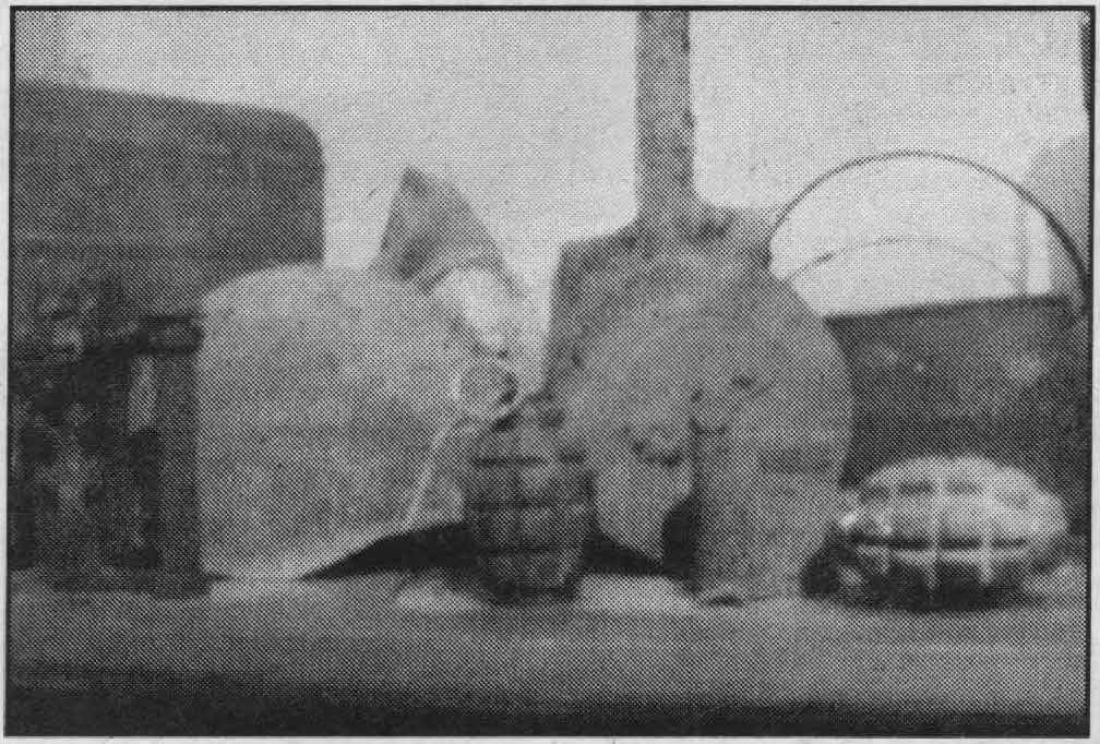 В крохотной “двушке” сразу натолкнулись на любопытную экспозицию. На полках шифоньера были разложены 80 патронов, штык-ножи, две гранаты, 7 “рубашек” для лимонок, увеличивающих радиус поражения, автоматные диски, миноискатели. Чтобы перечислить все это, понадобилось полчаса. Между делом милиционеры выяснили, что первую из этих находок оружейник сделал в 7-летнем возрасте. И с тех пор - а копателю уже минуло 39 - тяга к раскопкам овладела им полностью. Все свое свободное время он лазал по калужским лесам, берегам реки Нары, кротом вспарывая недра. А затем тащил в гнездо все, на что реагировал его миноискатель, - фляжки, значки, зажигалки, каски, и, главное, боеприпасы и оружие.