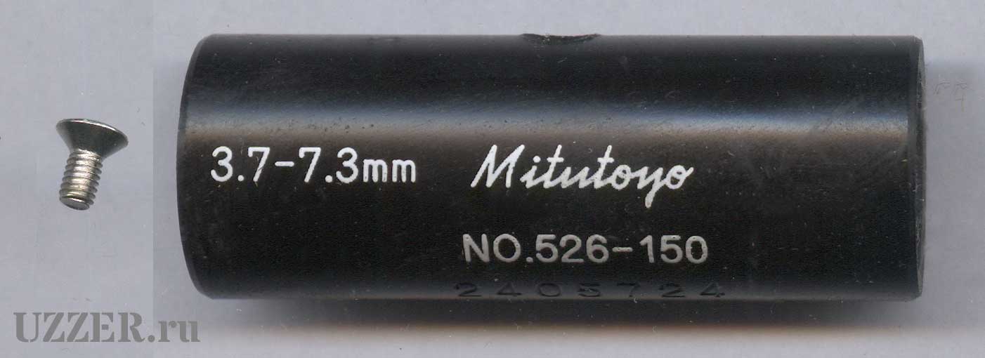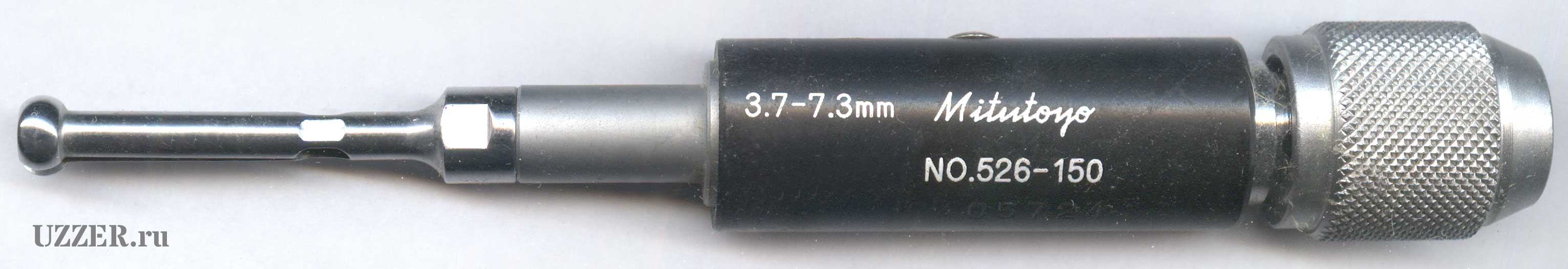 Данный экземпляр диапазон измерений 3,7-7,3 мм NO.526-150 он работал с индикатором часового типа Mitutoyo 0.001-1 mm, 2109-10 - обзор и разборка по ссылке.