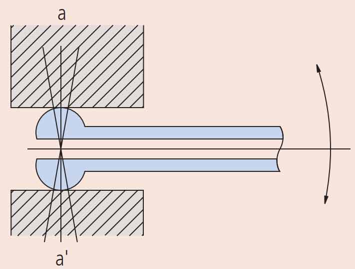 Сменные наконечники имеют контактные точки с большой кривизной, что облегчает позиционирование для измерения истинного диаметра (в направлении a - a') отверстия.