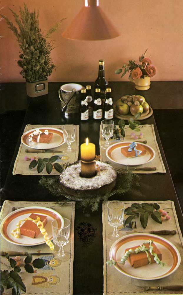 Как и во всем остальном, характер человека, его вкусы и желания проявляются и под Новый год. Одни придерживаются строго семейной среды, другие, наоборот, предпочитают повеселиться в компании друзей, а третьи умело комбинируют и то и другое. В любом случае, однако, встреча, будь то традиционная или импровизированная, пышная или скромная, предполагает приподнятое настроение. И дело вовсе не в звоне хрустальных бокалов, не в матовом сиянии заморского фарфора! Самая непритязательная посуда и обычные приборы будут выглядеть празднично в мерцающем свете свечки, когда рядом зеленеют еловые веточки. Радостное ожидание усилят изящно оформленные подарки. Гирлянды, елочная мишура, конфетти, игрушки, батики, фантики — чего только не выдумывают охотники до разных сюрпризов! Вот уж где стоит дать волю воображению, без оглядки включиться в забаву. Но удовольствие будет неполным, забудь мы в долгую новогоднюю ночь о вкусных лакомствах.