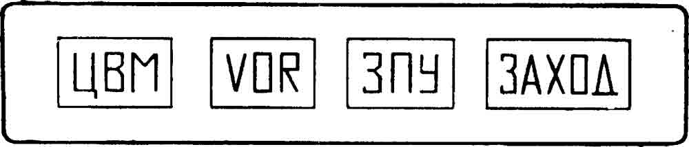 Пульт управления (ПУ) предназначен для коммутации пилотажно-навигационных сигналов на ПНП (прибор навигационный плановый). На лицевой панели ПУ 1 расположены кнопки-табло «ЦВМ», «VOR», «Заход» и одно световое табло «ЗПУ» (рис. 6).