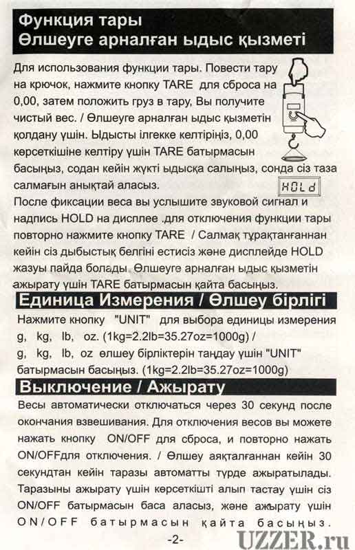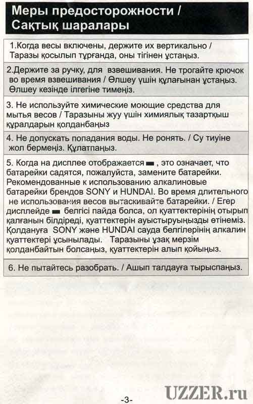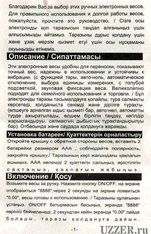 Теперь инструкция, она на русском и казахском языках. Короткая и скупая. Впрочем, как взвешивать и без нее понятно. Тем не менее, я ее оцифровал и выкладываю, может быть, кому-нибудь пригодится.