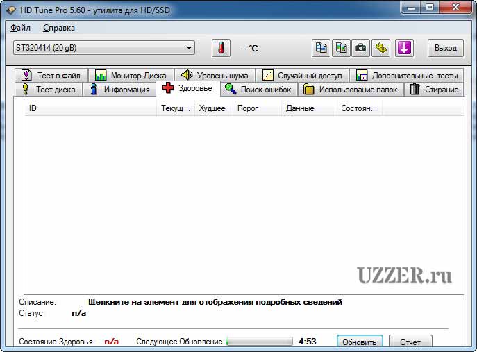 Подключаем к компьютеру и запускаем утилиту HD Tune Pro. Ну и еще, почему-то CrystalDiskInfo не увидел этого диска.