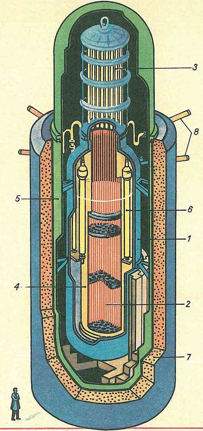 В нашей стране успешно осуществляется опытно-промышленная эксплуатация энергетических реакторов на быстрых нейтронах с натриевым наполнителем БН-350 на Шевченковском энергокомплексе и недавно введенного на Белоярской АЭС реактора БН-600. Разрабатывается реактор электрической мощностью 1600 мегаватт. Однако ряд особенностей установок этого типа — применение больших количеств натрия и использование металлоемких и дорогостоящих трехконтурных схем переноса тепла — заставили искать новые типы реакторов на быстрых нейтронах.