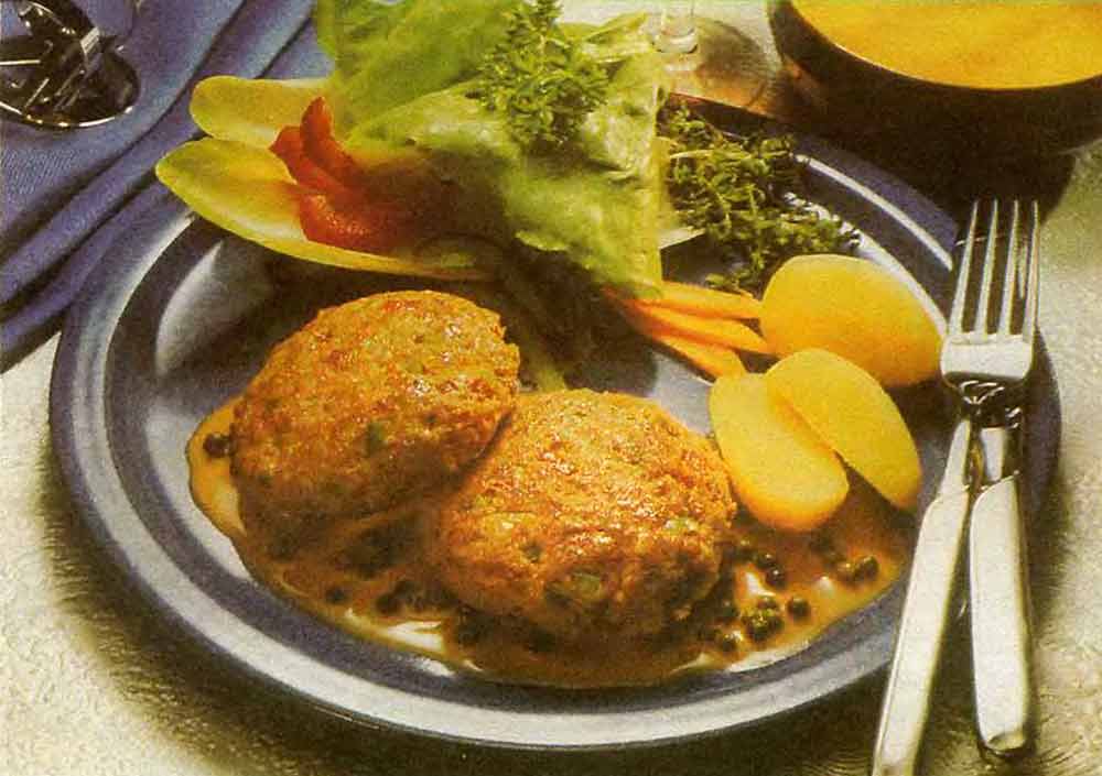 На гарнир подать отварной или жареный картофель, картофельное пюре (все по вкусу) и листья салата.