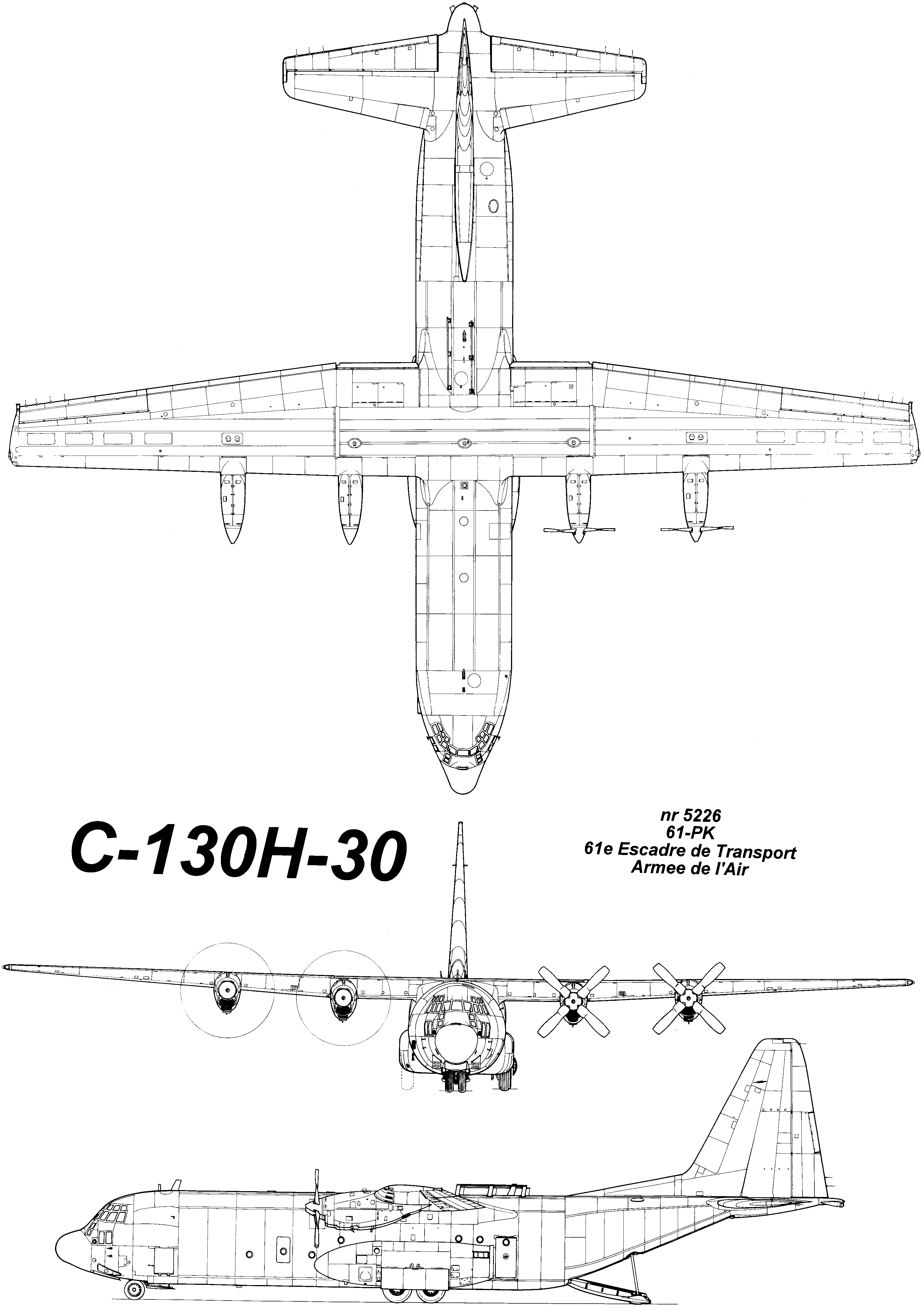 Военно-транспортный самолет C-130H-30 "Геркулес" Армии США - чертежи