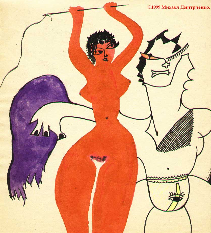 А тут, как бы между прочим, прогуливалась роковая женщина - Дама У. Её чёрные нейлоновые чулки, похожие на двух облегаю¬щих анаконд, притягивали солнечные лучи и все мужские взгляды. О, сколько мягкотелых мужских сердец эти штучки заставили биться неровно, пускать к асфальту слюни и придерживать штаны. Она знала, что она самая-самая неотразимая.